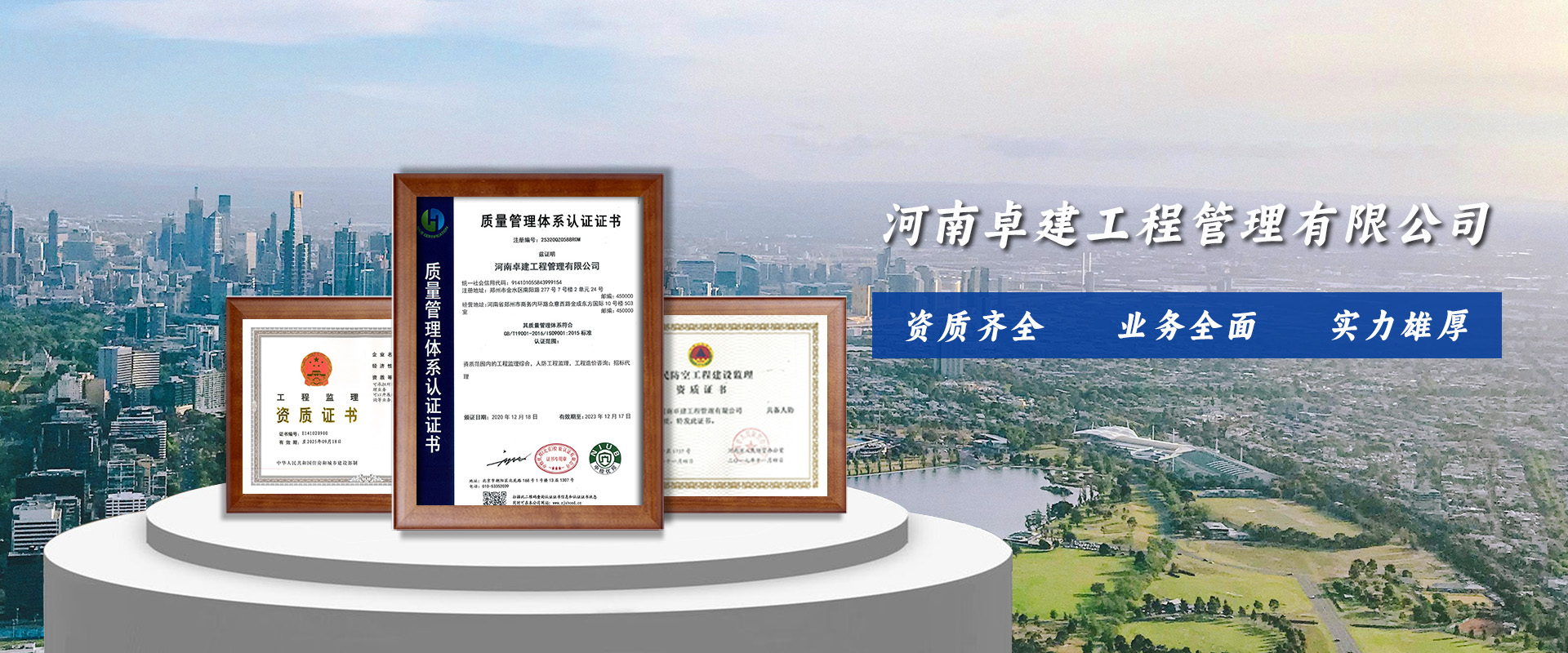 河南卓建工程管理有限公司(前身名為河南卓建建筑工程監(jiān)理有限公司)是經(jīng)鄭州市工商行政管理局批準(zhǔn),成立于2011年,經(jīng)營業(yè)務(wù)范圍包括建筑工程監(jiān)理、工程監(jiān)理、工程項(xiàng)目管理、招標(biāo)代理、造價(jià)咨詢等,具有工程監(jiān)理綜合資質(zhì)、人防工程丙級資質(zhì)、造價(jià)咨詢資質(zhì)乙級。公司已通過質(zhì)量管理體系認(rèn)證、職業(yè)健康安全管理體系認(rèn)證、環(huán)境管理體系認(rèn)證,公司是河南省監(jiān)理協(xié)會會員單位。